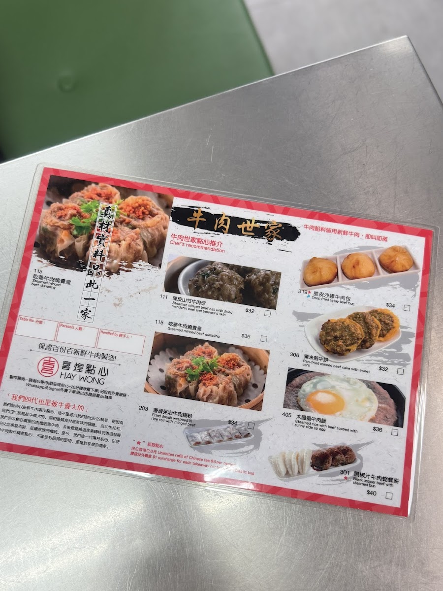 Hay Wong Menu
